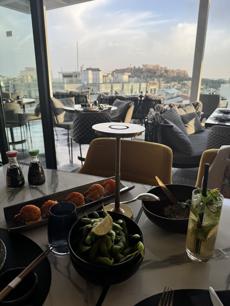 Great service. Awesome atmosphere. Great dj session. The view is unbeatable. Konstantinos the host is doing an amazing job! Great sushi, great pasta dishes. I highly recommend. One of the hottest places in Athens. Must visit!